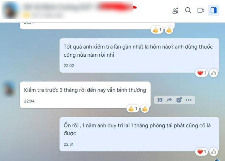 - Điều trị từ 2-3 tháng trở lên: Các bác sĩ sẽ chủ động liên hệ hỏi thăm sức khỏe định kỳ từ 20 – 30 ngày/lần để đảm bảo theo sát tiến trình của người bệnh.
